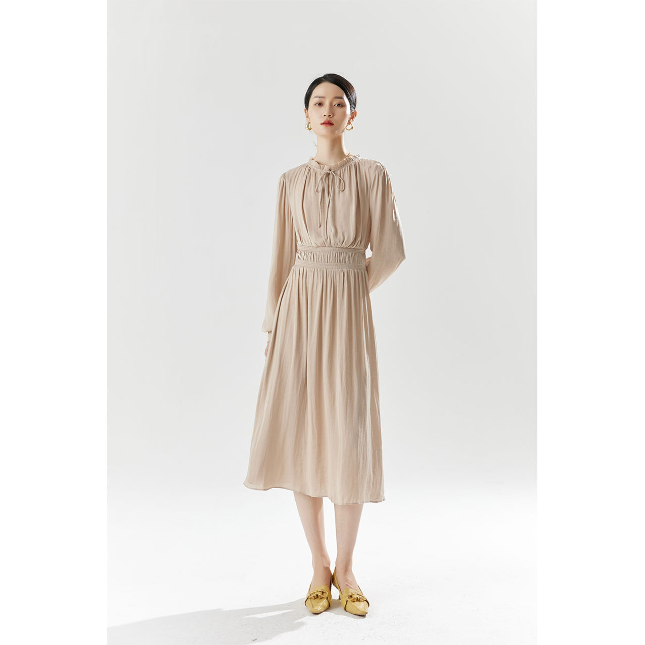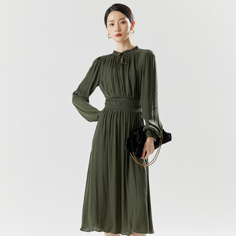 2025 Summer New French Elegant Romantic Pullover Skirt High Waist Solid Color Medium Length
