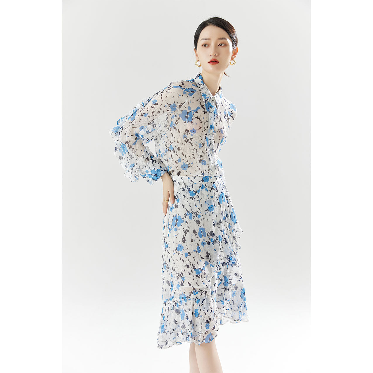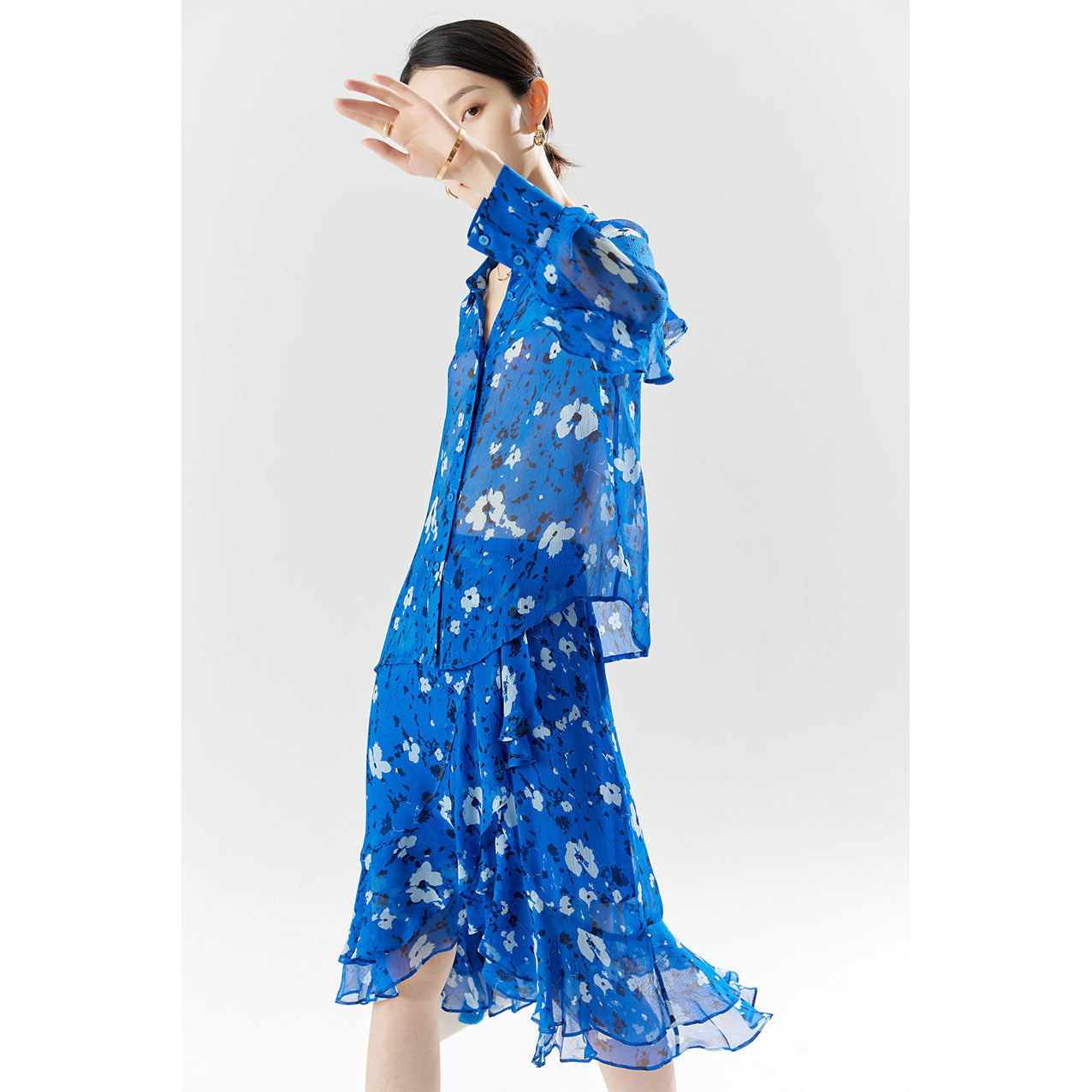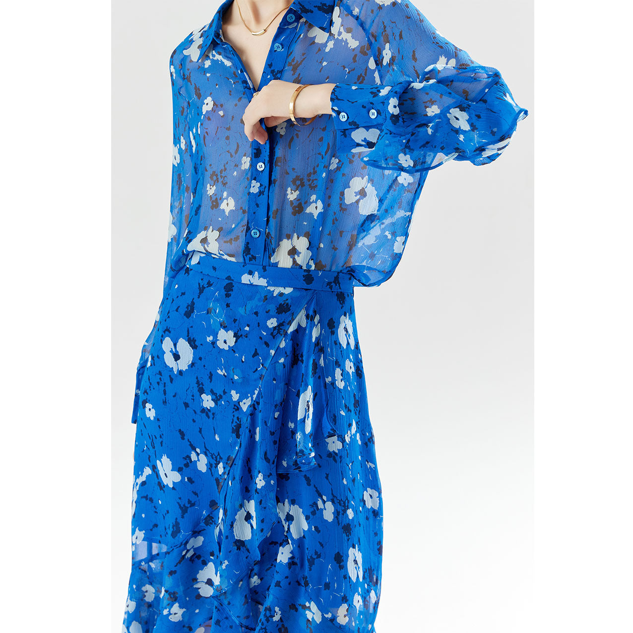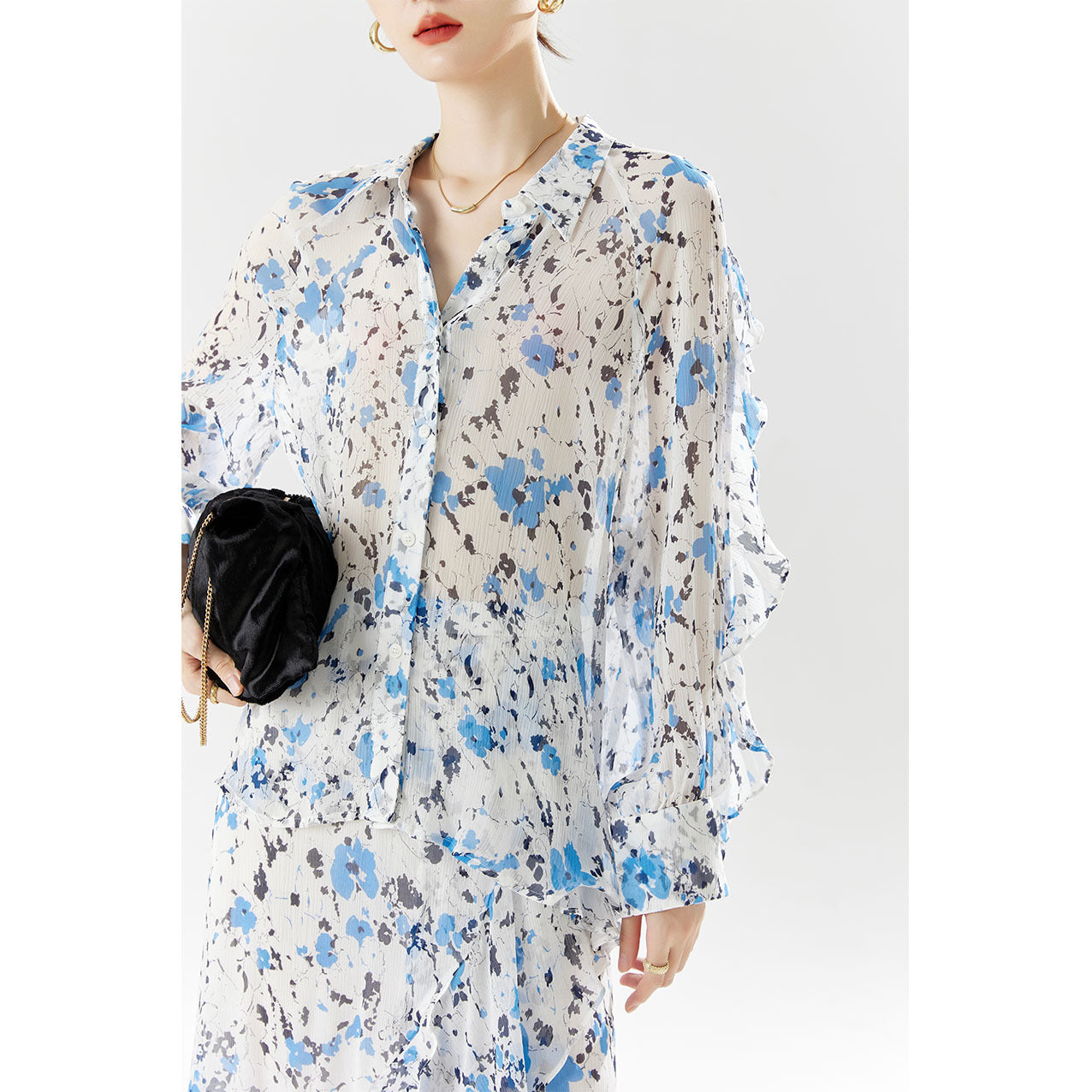 2025 Summer New French Silk Long Sleeve Lace Printing Versatile Lapel Temperament Commuter Floral Women's Shirt